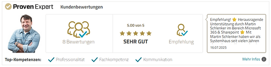Expertise & Innovation: Seit 2013 sind wir spezialisiert auf Microsoft 365 und kennen die aktuellen Funktionen und Entwicklungen (z. B. SharePoint, Teams 2.0, Exchange, Intune).